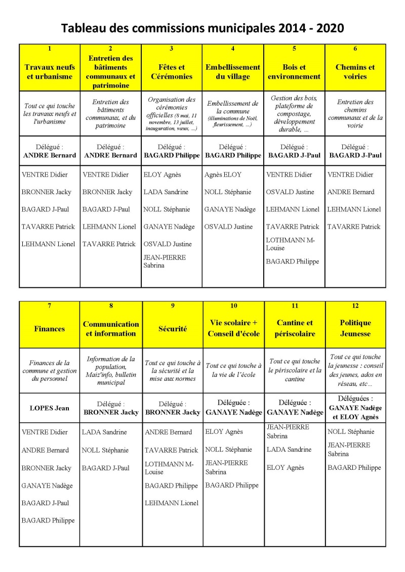 Le conseil municipal est composé de 12 commissions de travail. et 5 commissions communales et intercommunales